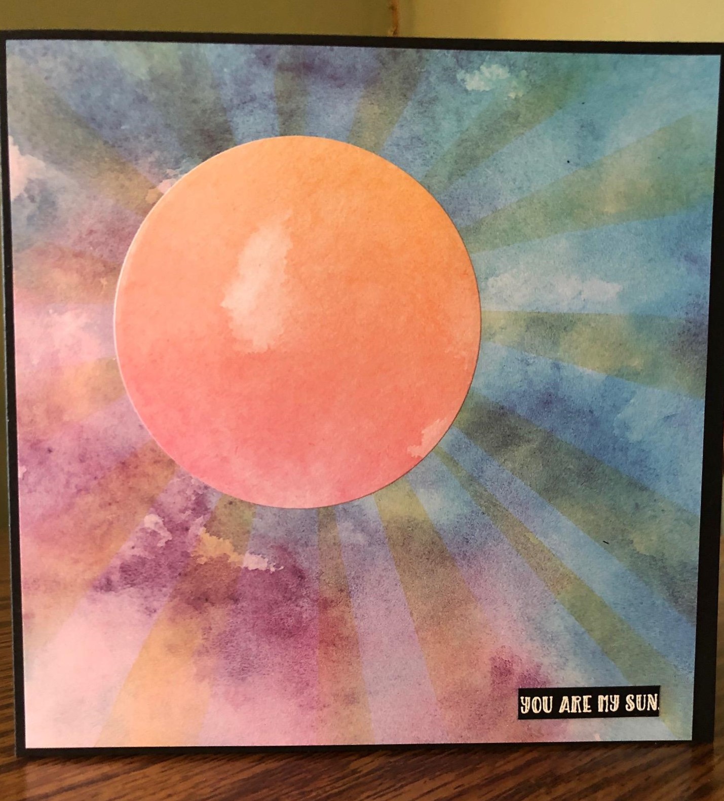 This is a birthday card for my younger son's upcoming birthday. It is directly taken from Shari Carroll's card (here), the only changes being the paper used for stamping the sun and moon, stars and greeting coming from different sources, and because I didn't have a stencil for the sun rays (for ink blending), I cut my own mask from scrap paper to create them.